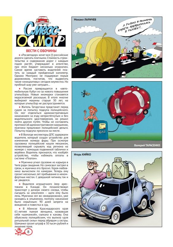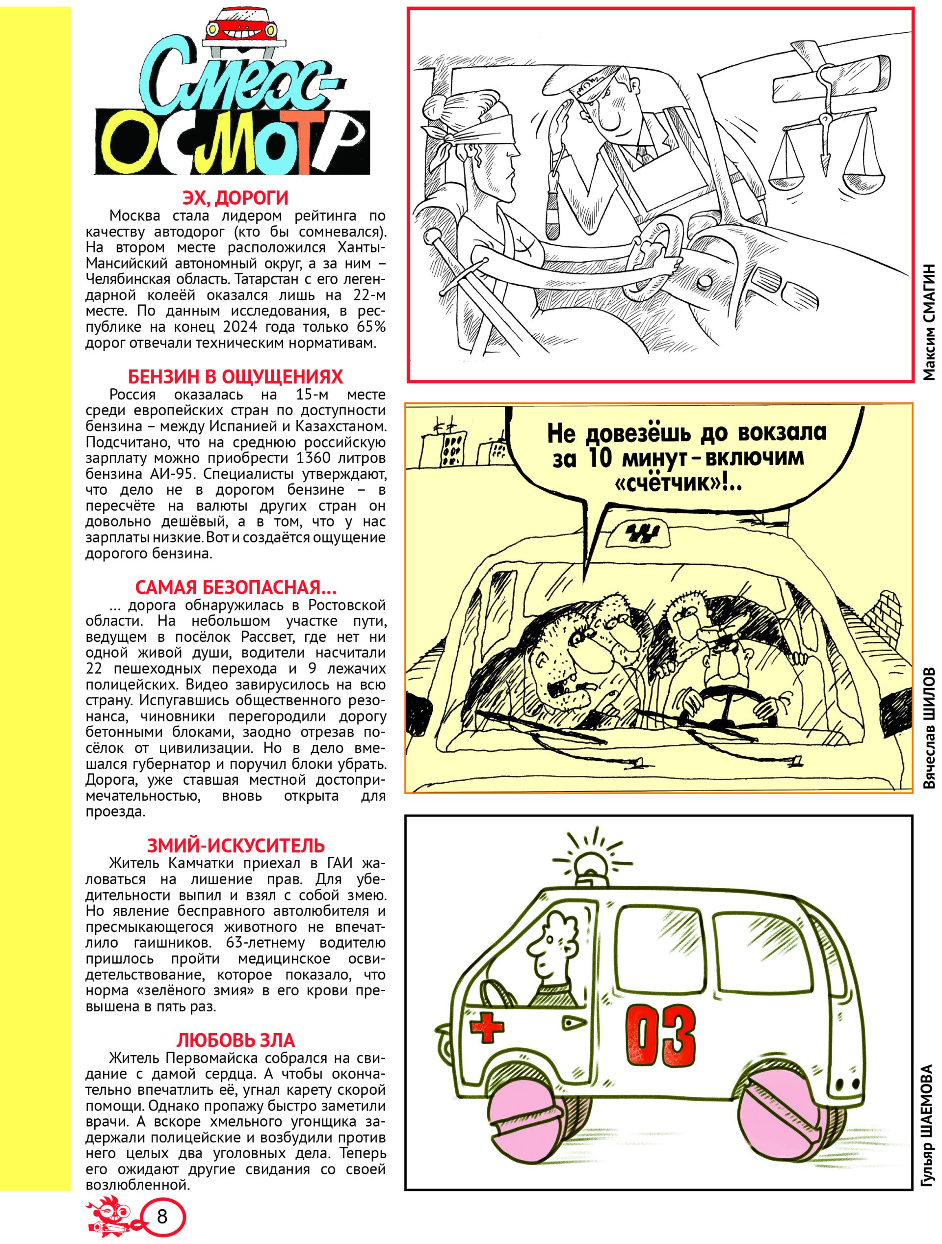 Оставьте реакцию на материалСмехосмотр № 9 (рус)3 октября 2025 - 12:29  Подборка заметок «Эх, дороги», «Бензин в ощущениях», «Самая безопасная…», «Змий-искуситель», «Любовь зла», рис. Максима Смагина, рис. Вячеслава Шилова, рис. Гульяр Шаемовой